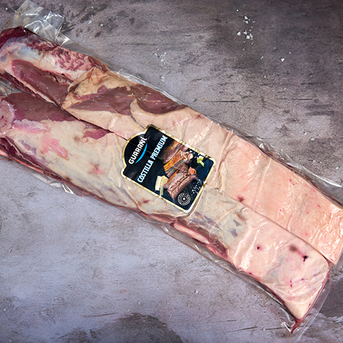 La costilla o asado de tira es un corte que se obtiene con el corte transversal del costillar de la res. Al incluir hueso este corte tiene un aroma y sabor muy especial, te presentamos la costilla premium una selección exclusiva con un anchor de aprox. 12cm. ¡Ideal para acompañarlo con un vacio y chorizos Guaraní! ¡Y así presentar el típico asado paraguayo!
